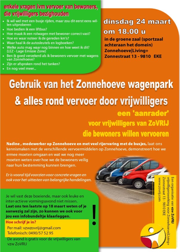 24 maart – Vorming: Gebruik van het wagenpark en alles rond vervoer door vrijwilligers