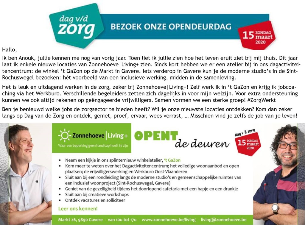 Bezoek ons op Dag vd Zorg – 15 maart