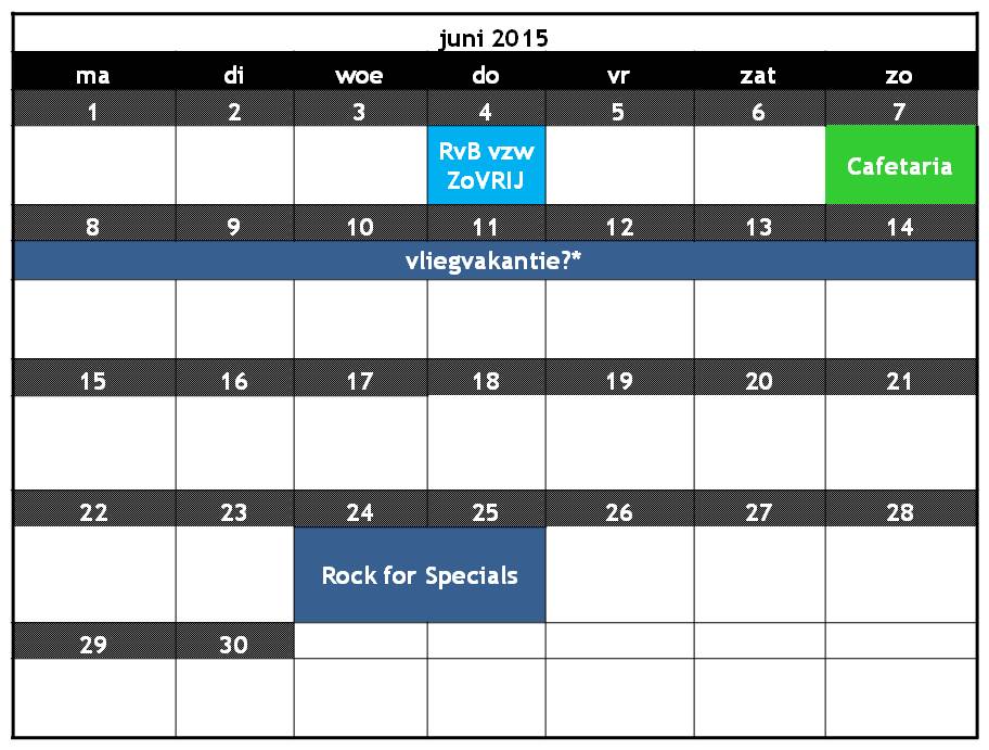 Je kan elke maand uitvergroten door er op te klikken en zo de kalender doorbladeren. * de data van de activiteiten met sterretje kunnen nog gewijzigd worden