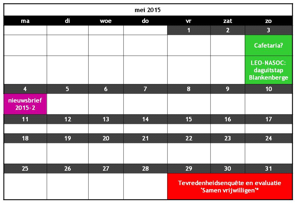 Kalender voorjaar 2015