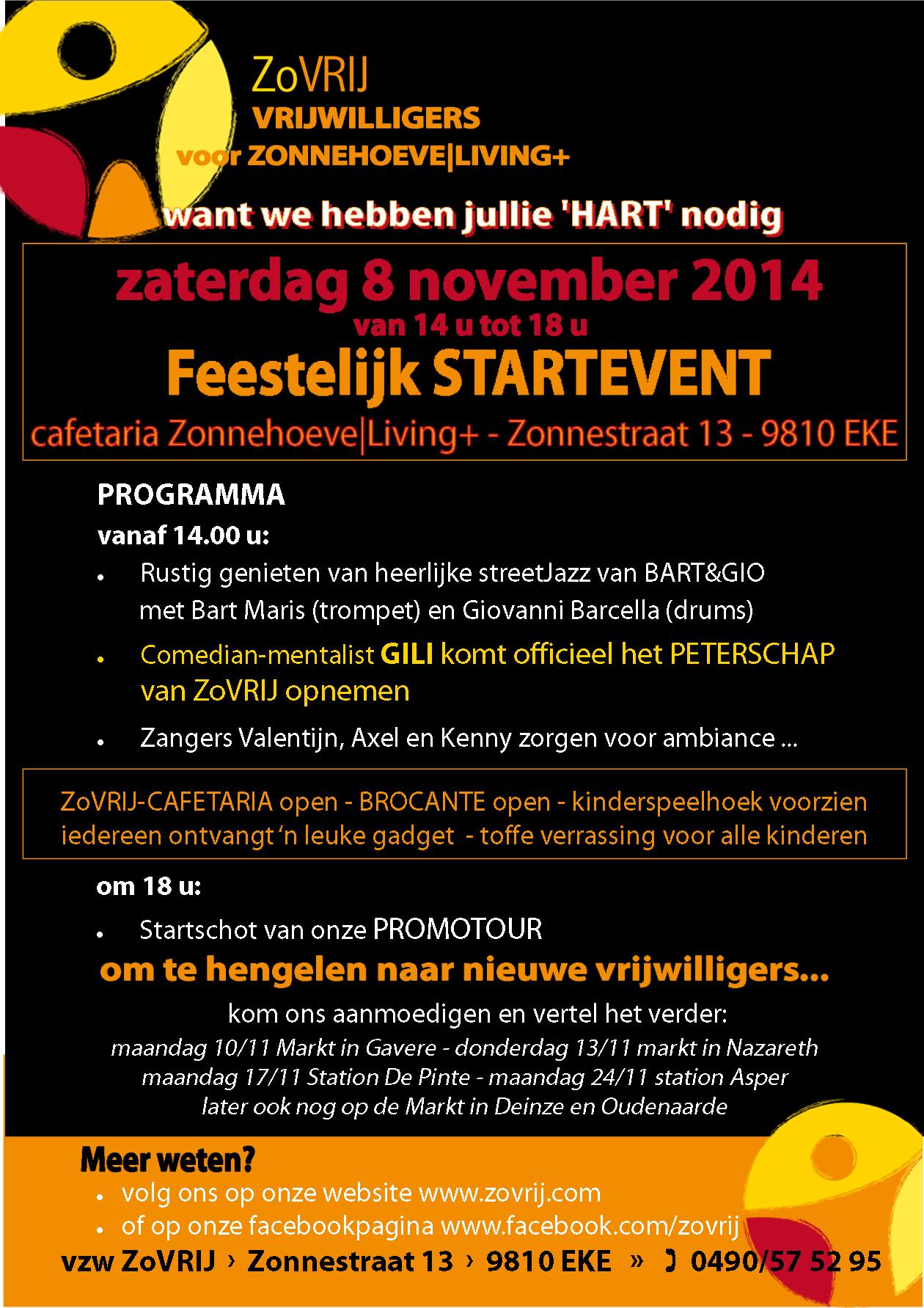 Op 8 november komt de bekende comedian-mentalist GILI officieel het peterschap van vzw ZoVRIJ opnemen! We zijn fier dat hij ons met zijn aanwezigheid komt steunen om het startschot te geven voor onze promotour! ’t Wordt een gezellig Startevent, met nog veel meer muzikale en andere verrassingen.